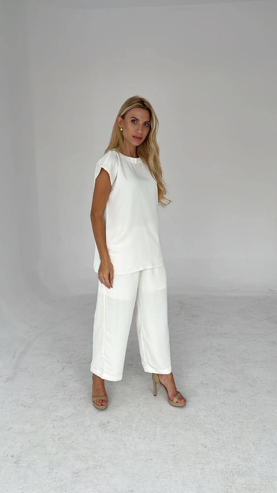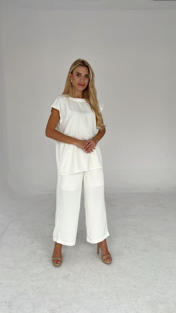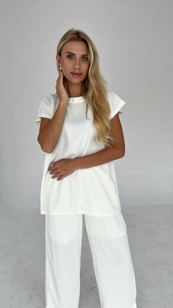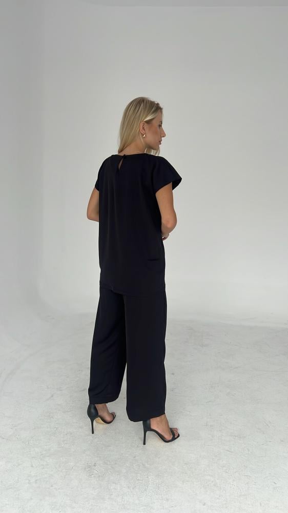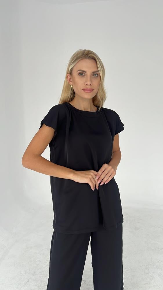 طقم داخلي بنطلون و بلوزة بأكمام قصيرة بقماش الكريب البارد