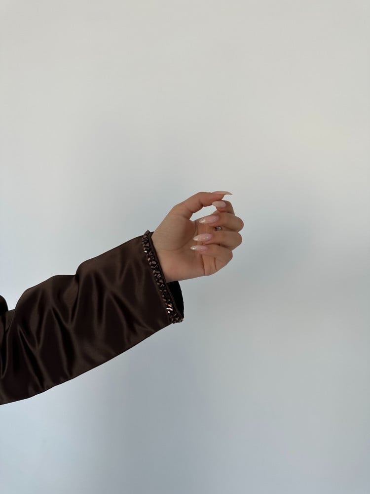 عباية تفتة بقصة كلوش مع شك يدوي طولي و على الاكمام