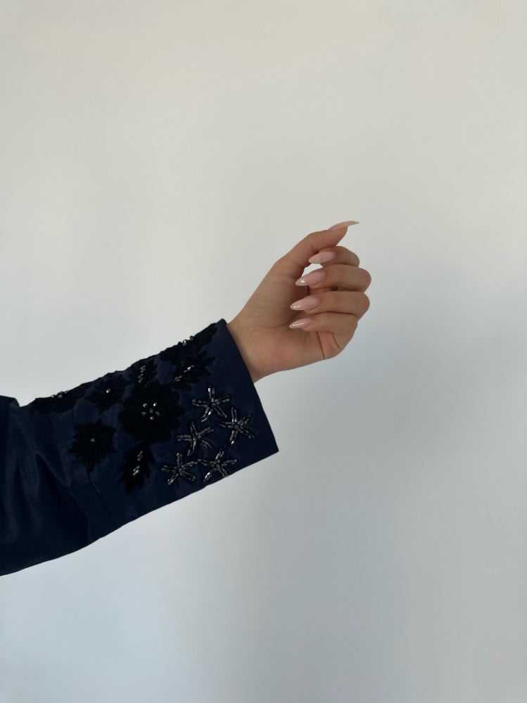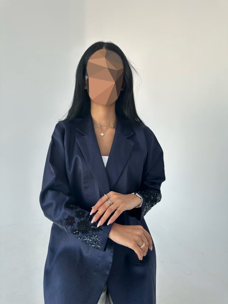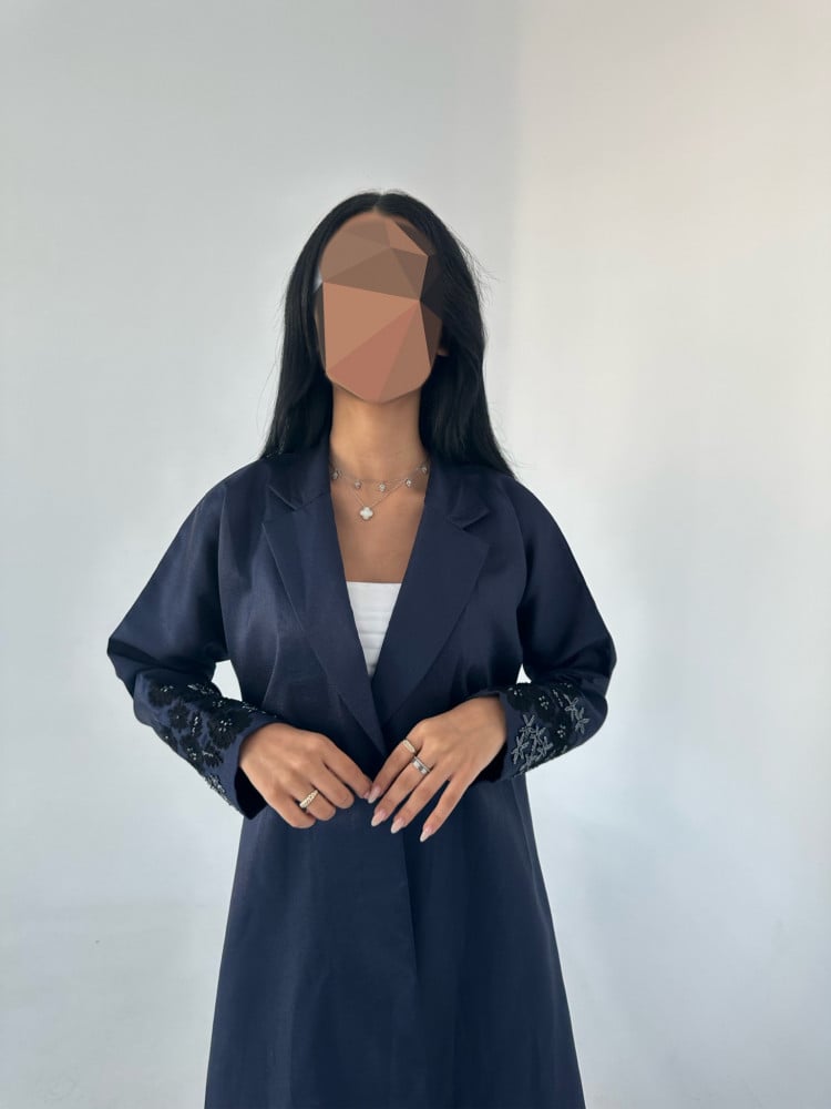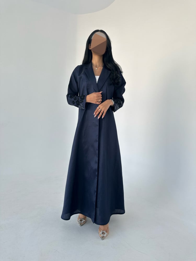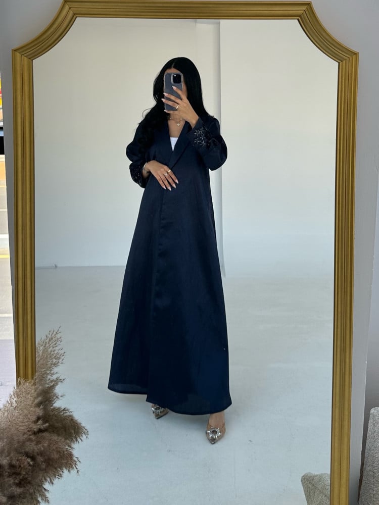 عباية قصة بليزر مع تطريز يدوي على الاكمام
