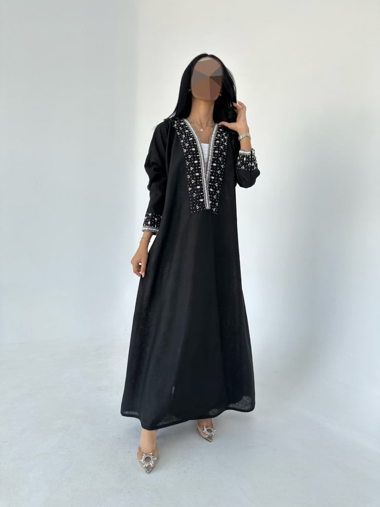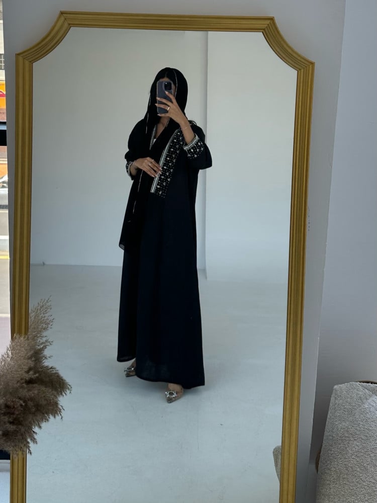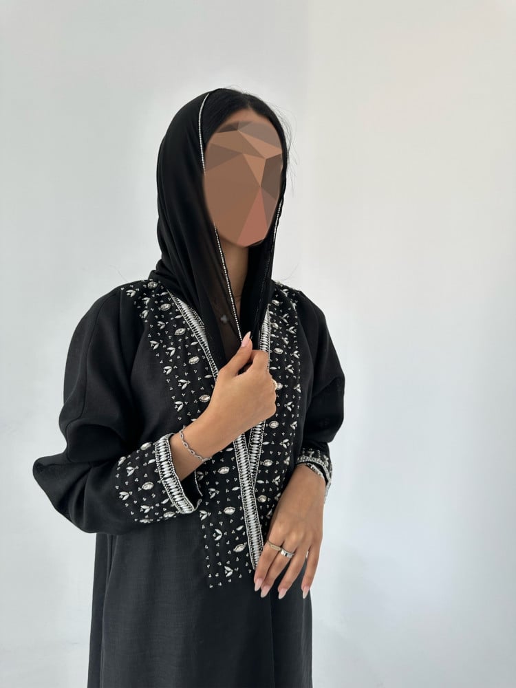 عباية بتطريز شك يدوي +طرحة شك يدوي
