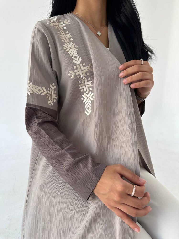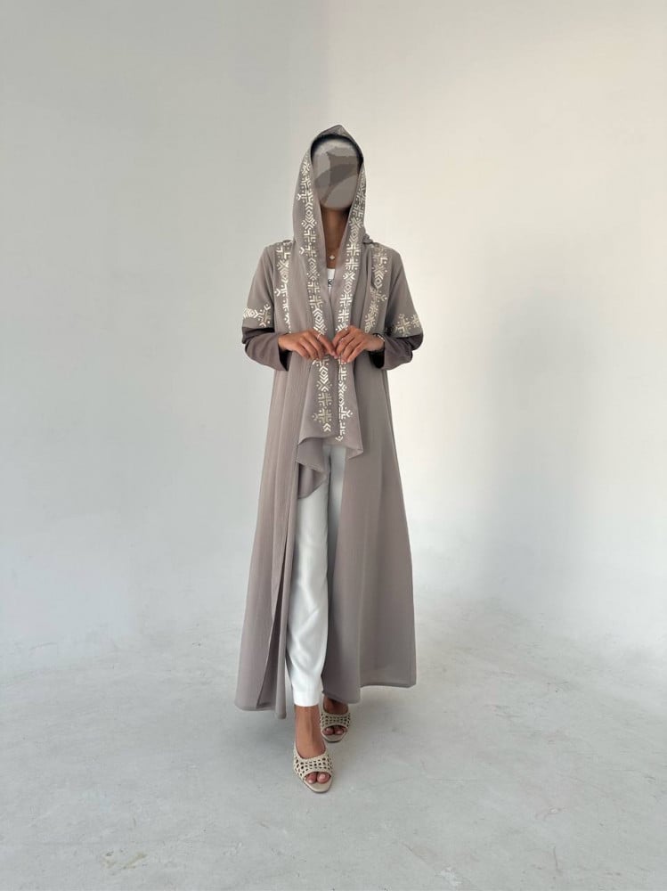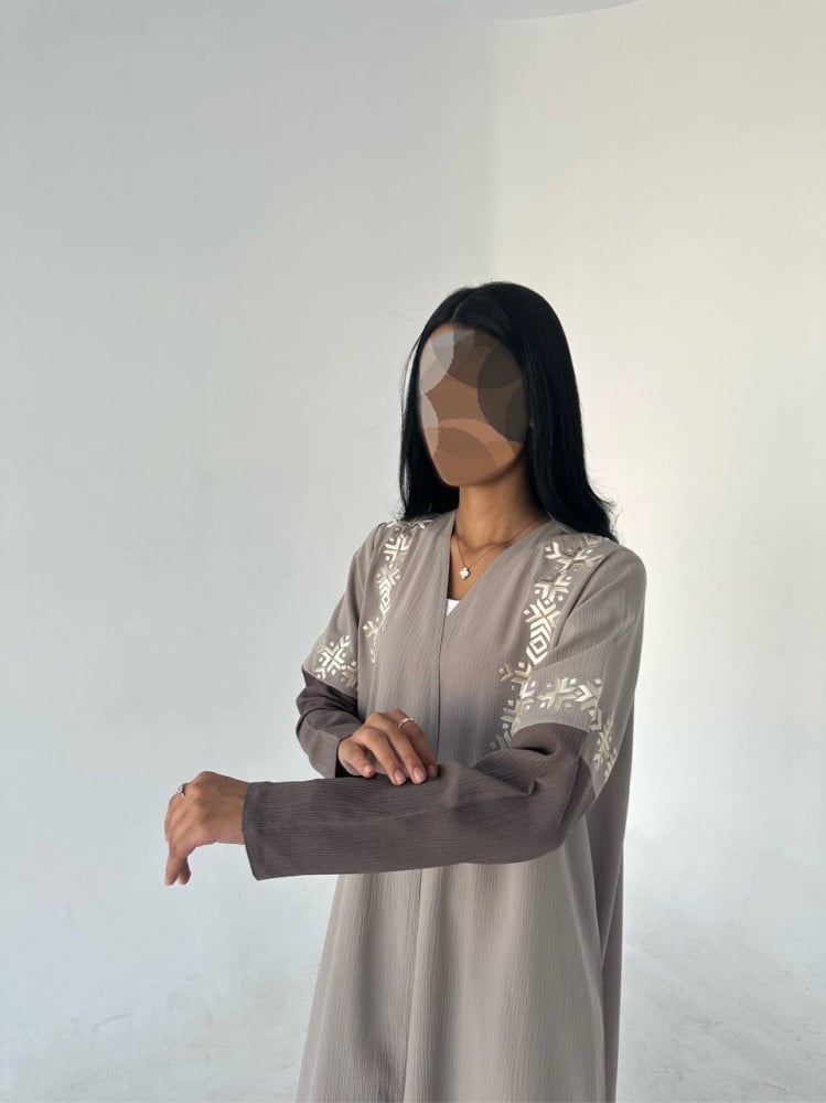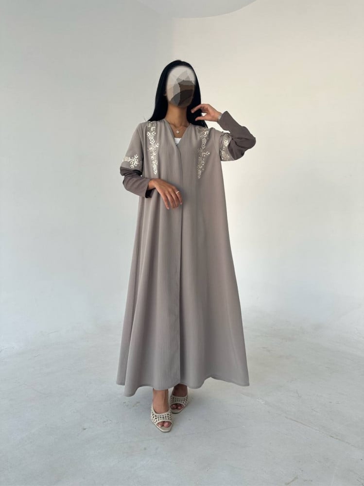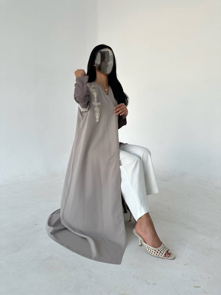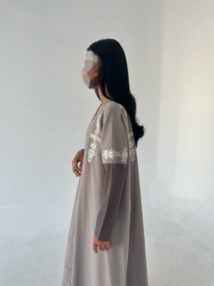 عباية A cut مع تطريز من الأمام و الخلف و الأكمام ( يمكن اضافة فستان داخلي بدون اكمام بنفس لون العباية)