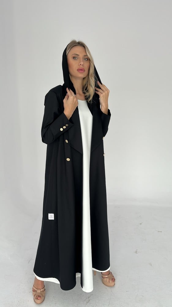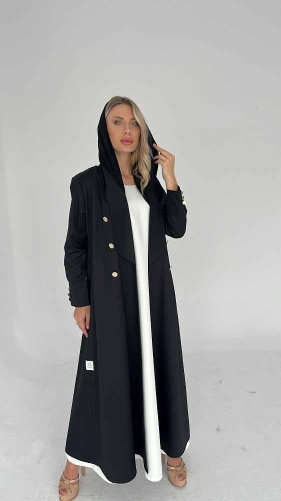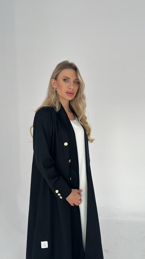 عباية قصة رسمية بازارير ذهبية من تصميم نومادك