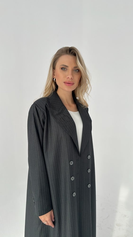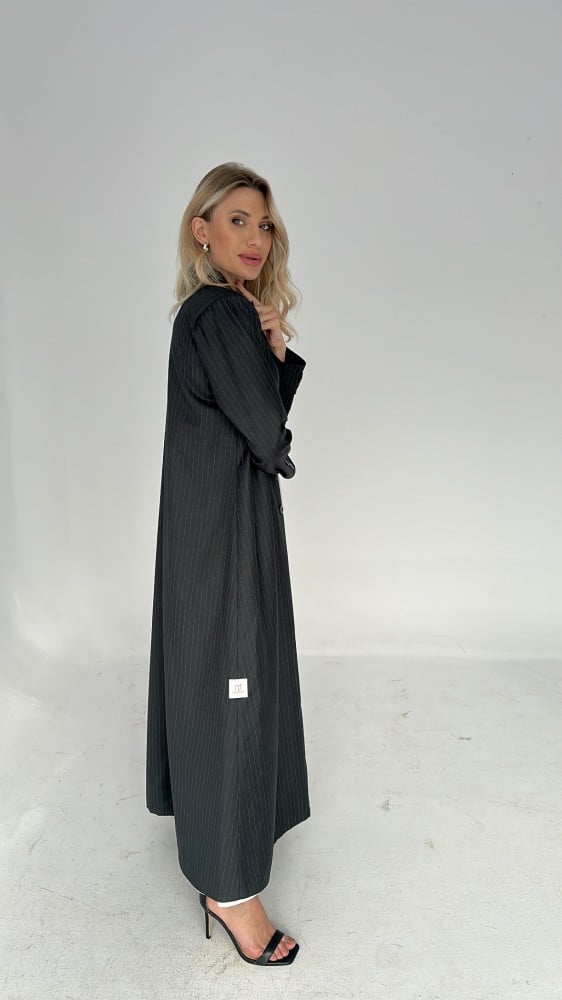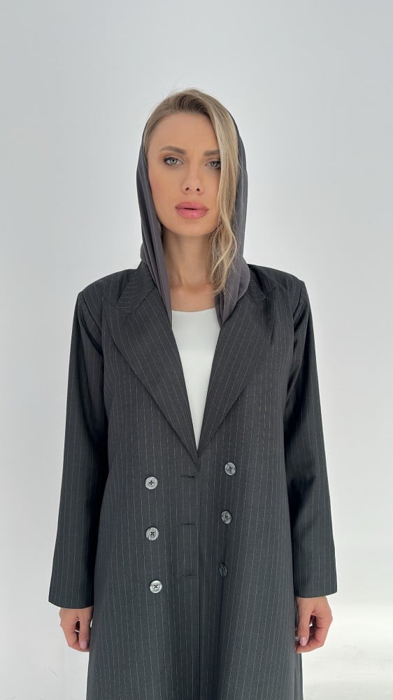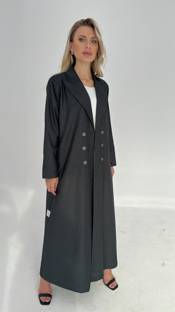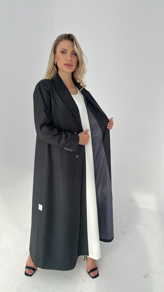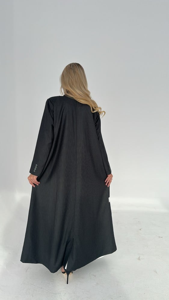 عباية بتصميم بليزر مخطط مبطنة من الداخل مع ازارير في الامام و على الاكمام