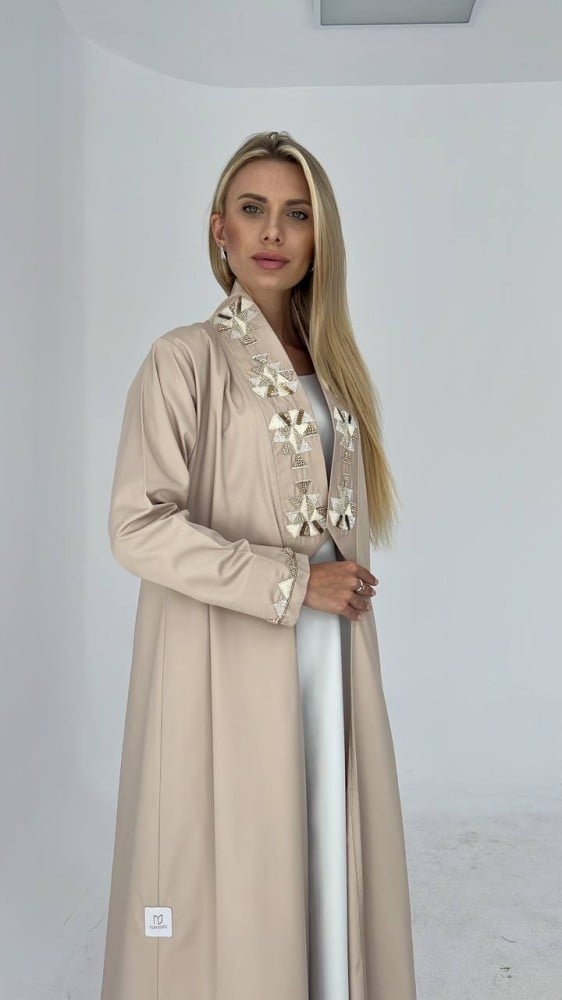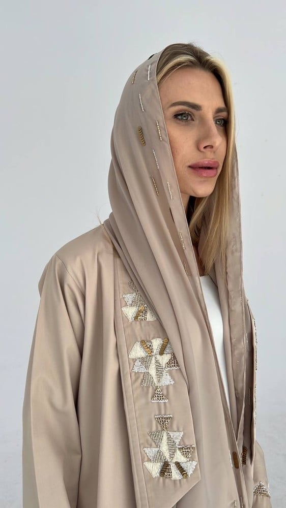 عباية بتطريز يدوي مبطن على الياقة والاكمام مع طرحة مطرزة