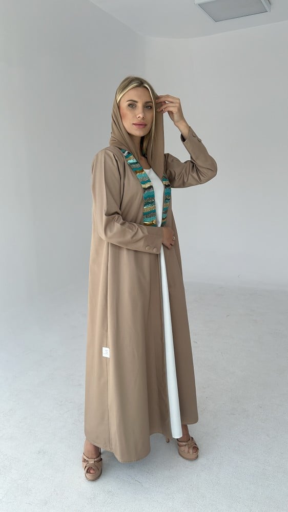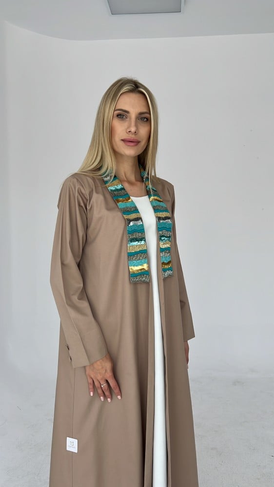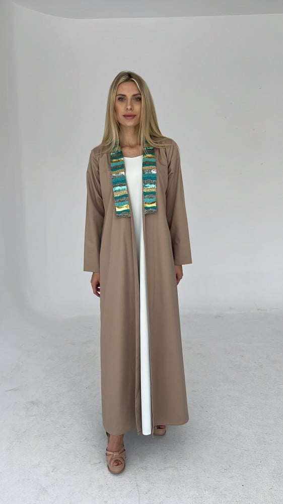 عباية A cut بياقة مطرزة يدوياً و أزرار على الاكمام