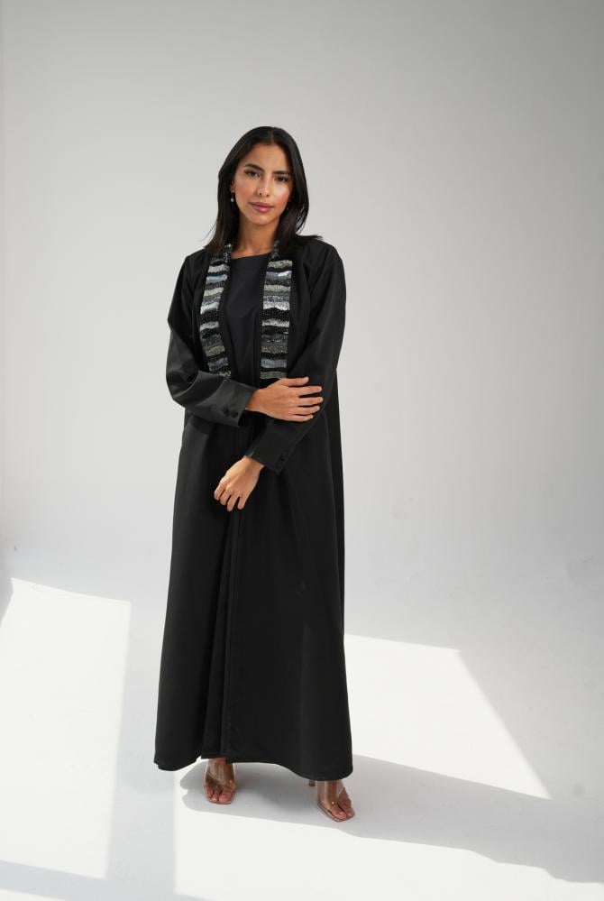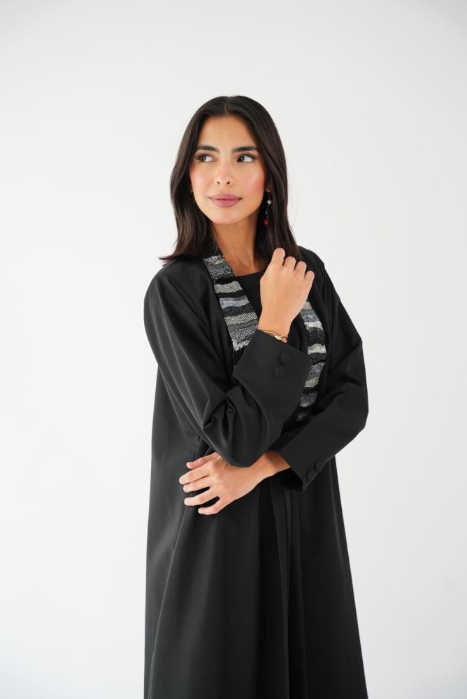 عباية A cut بياقة مطرزة يدوياً و أزرار على الاكمام