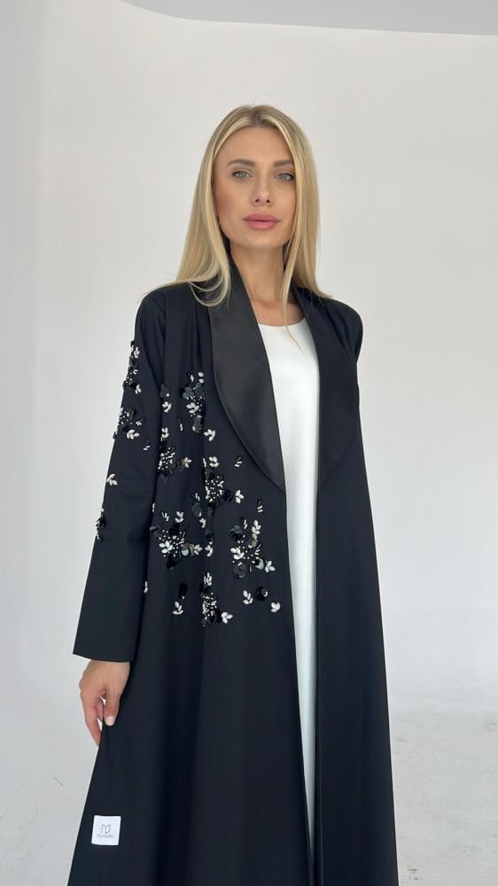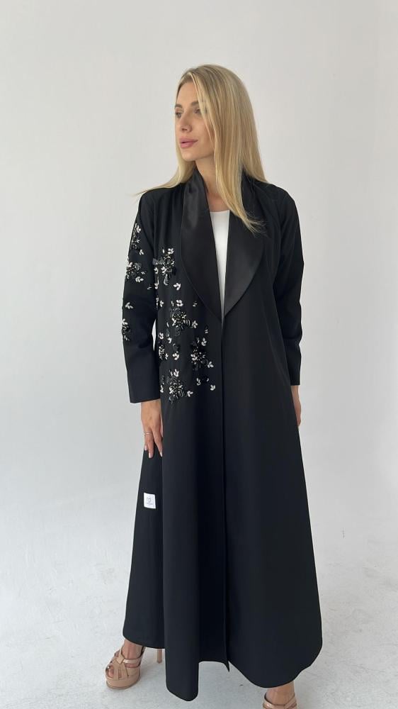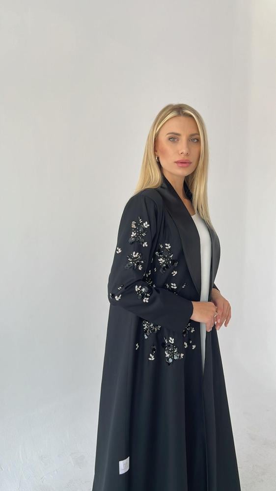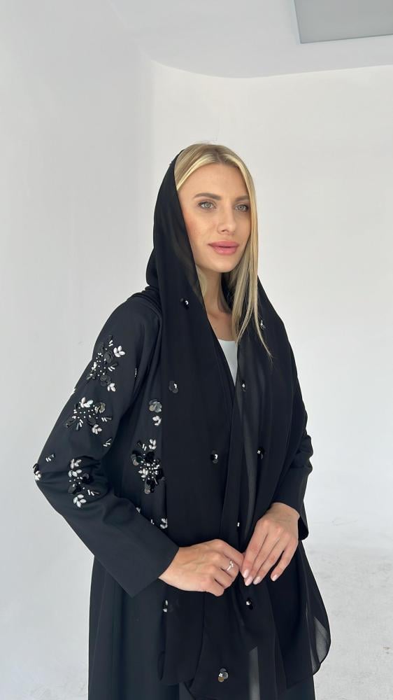 عباية رسمية بتطريز يدوي من الامام والاكمام مبطنة بالكامل مع طرحة مطرزة