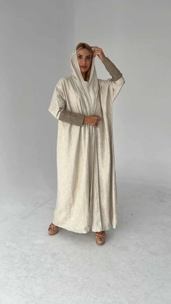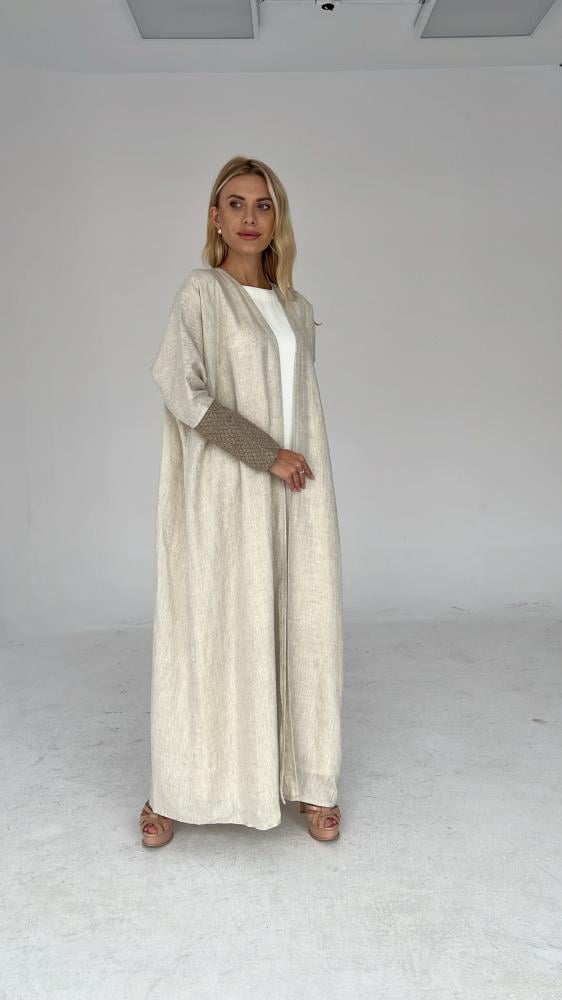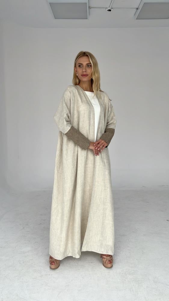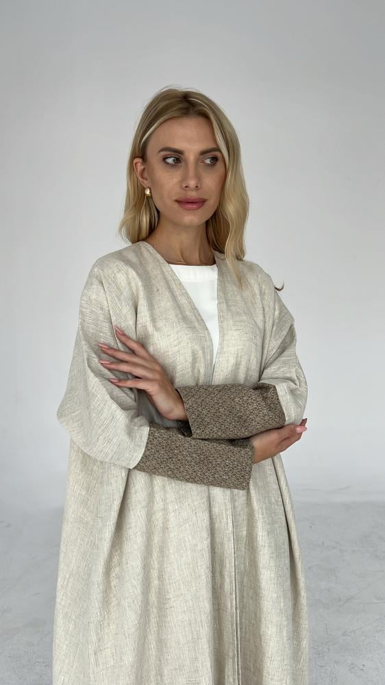 عباية بقصة نص بشت مع أكمام لينن مشجر