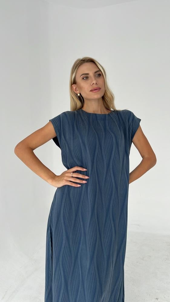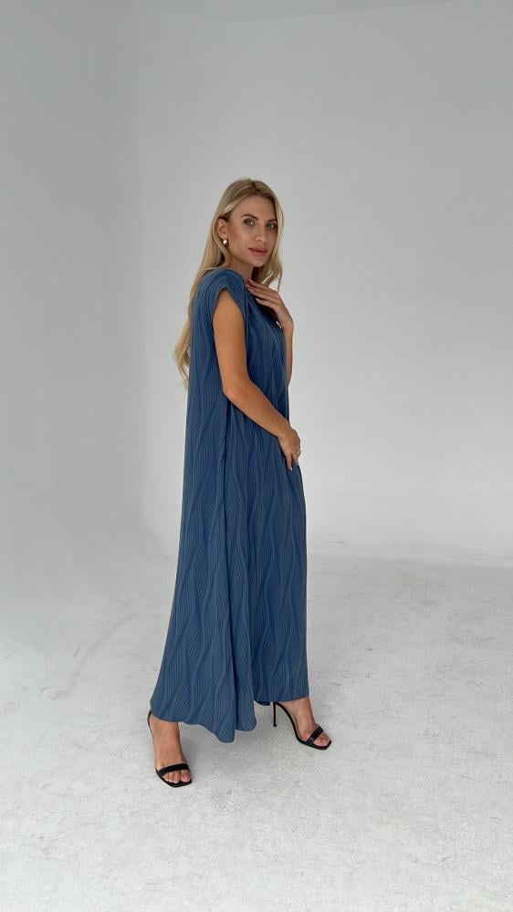 الفستان: حرير جاكار ياباني مشجر سماوي