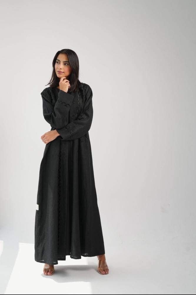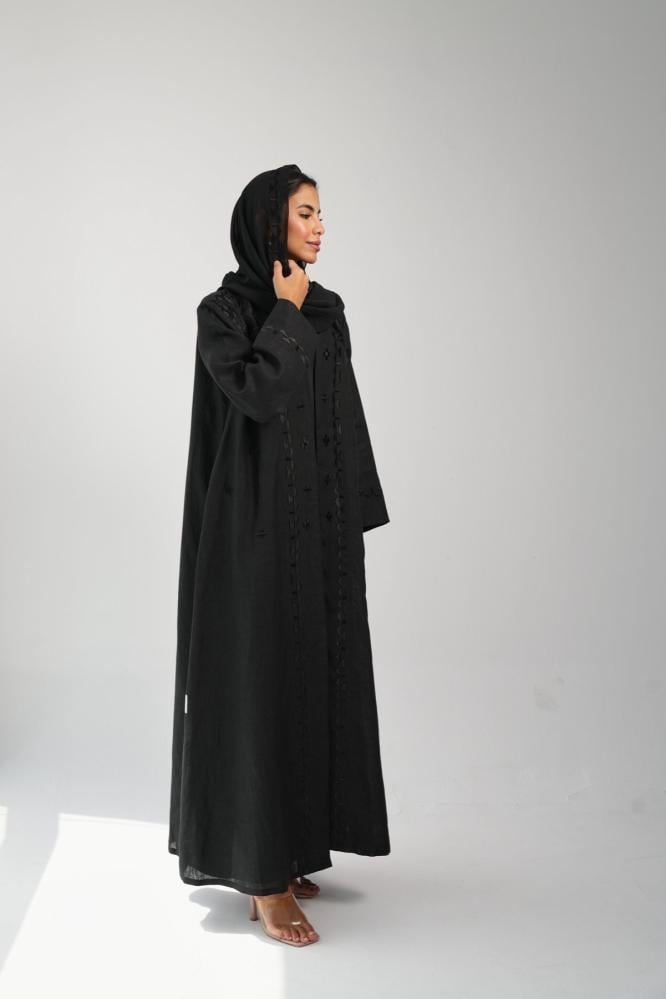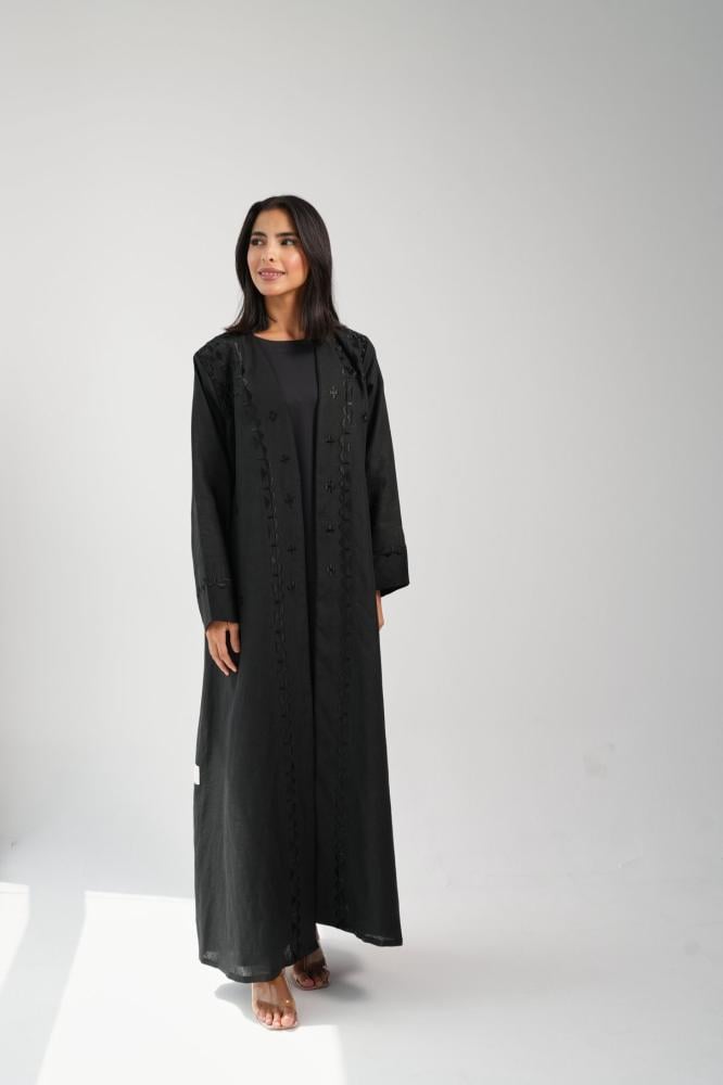 عباية مطرزة بالكامل بقصة كلوش خفيف مع طرحة مطرزة