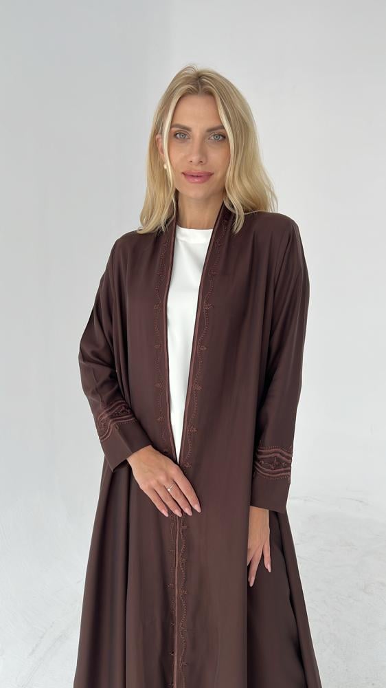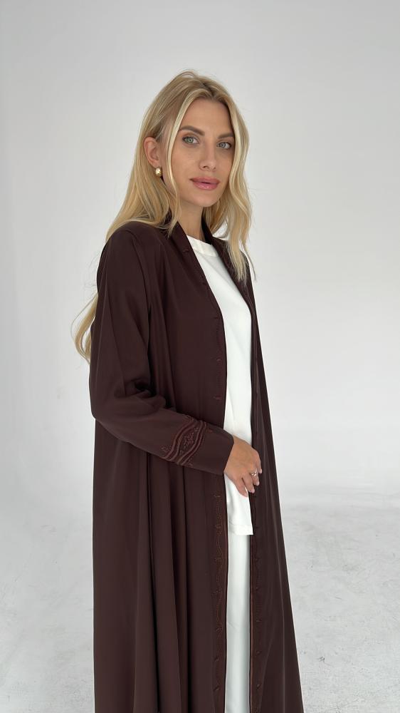 عباية قصة دبل كلوش مع تطريز يدوي من الامام و الاكمام مع طرحة مطرزة