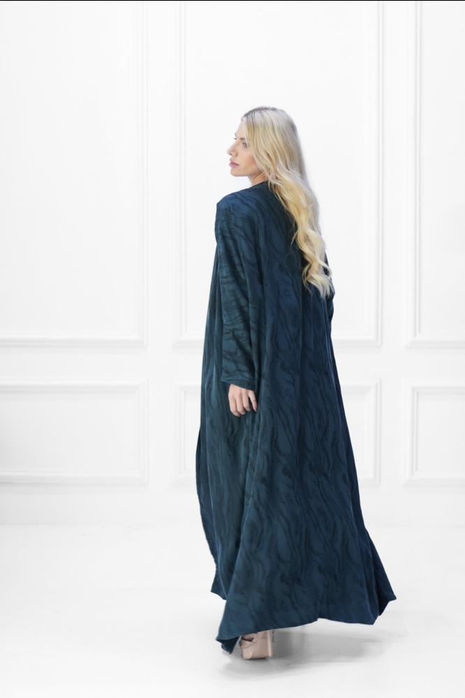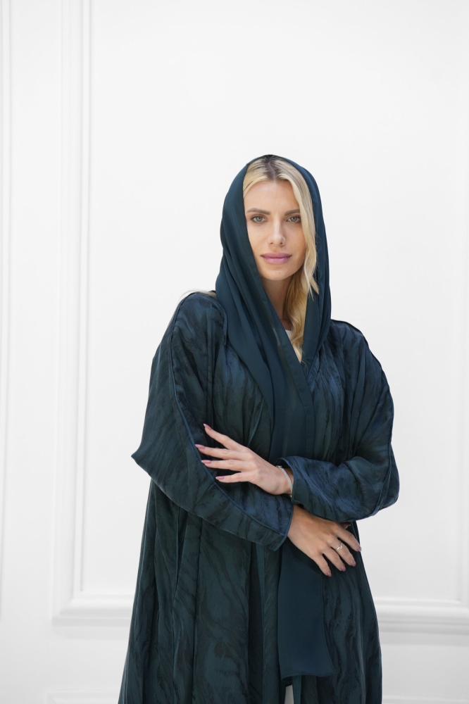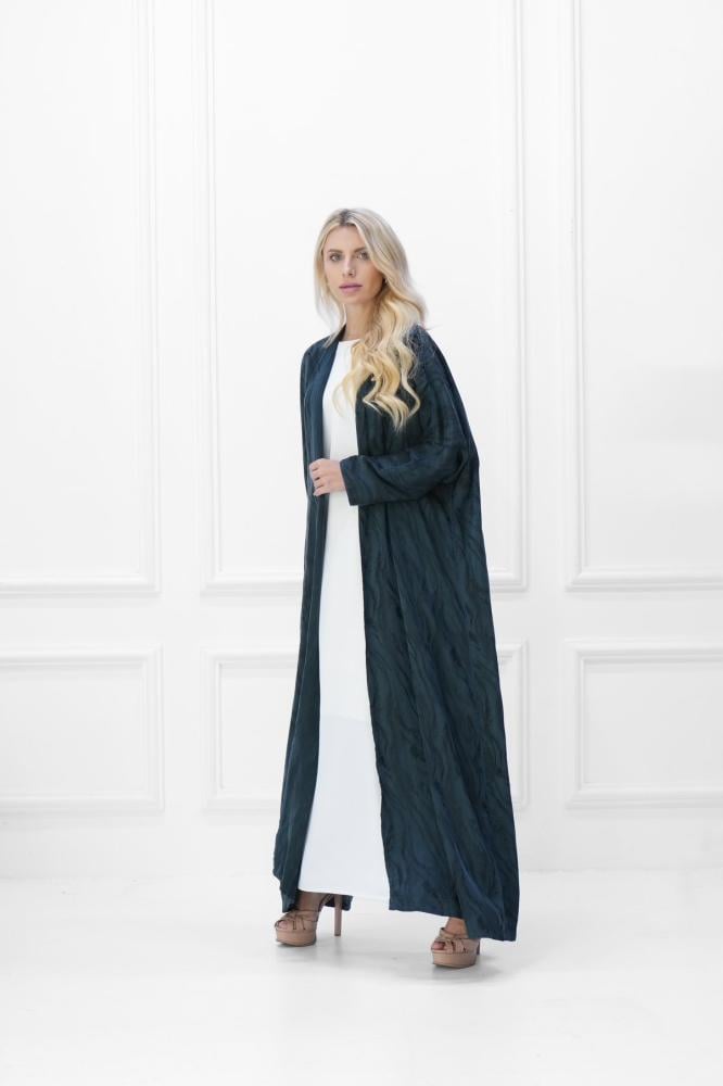 عباية حرير مغسول اخضر مشجر باطراف حرير سادة