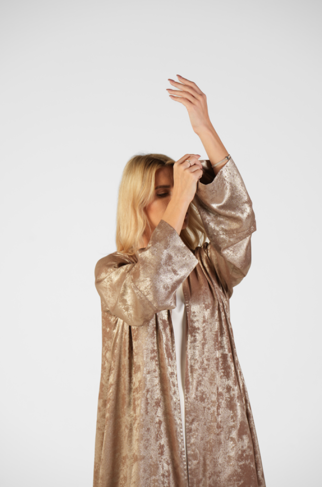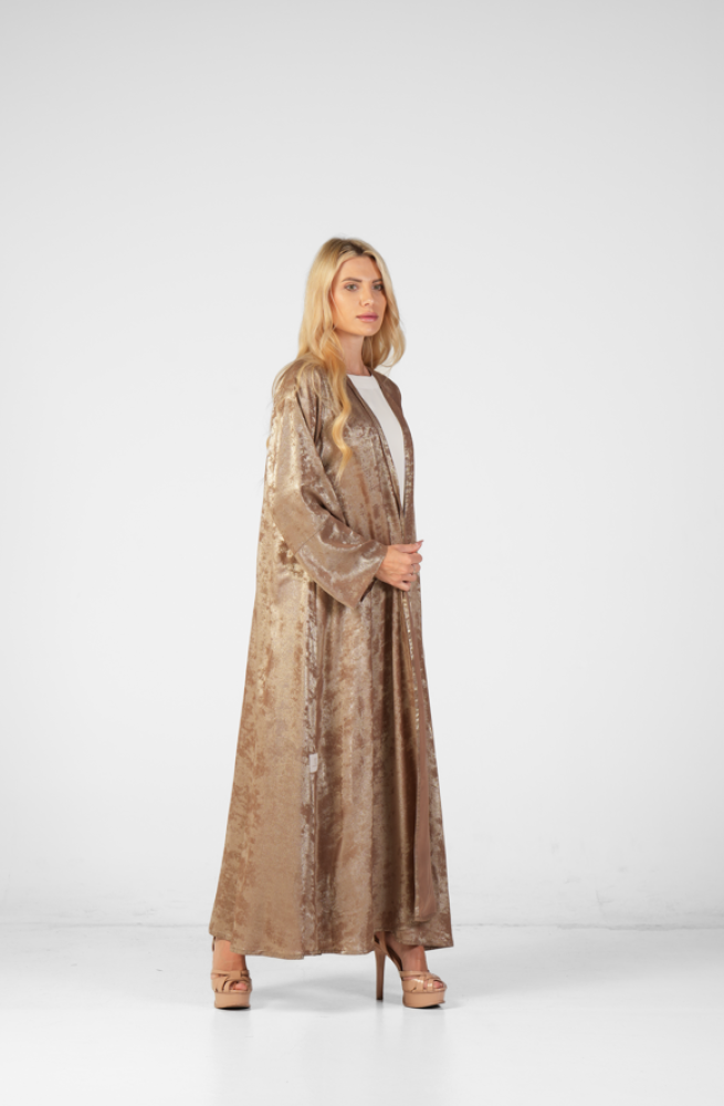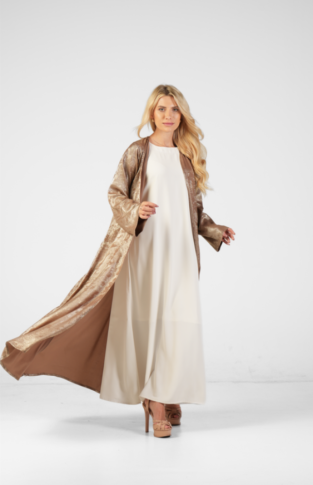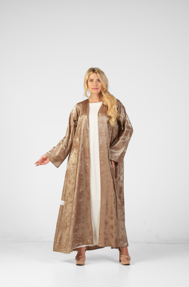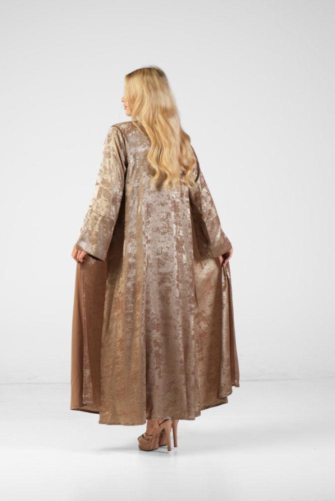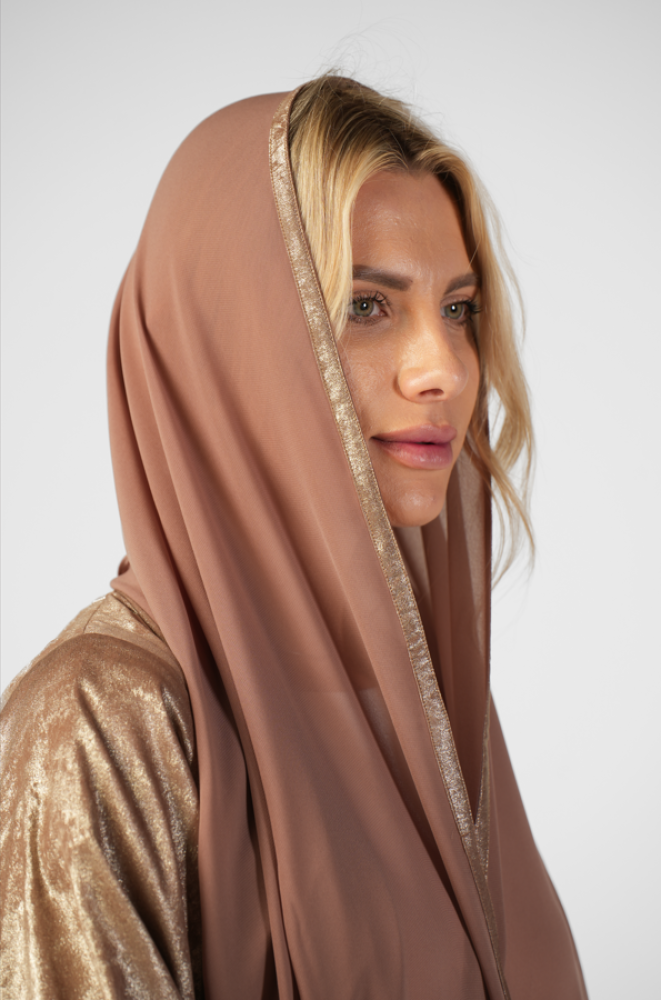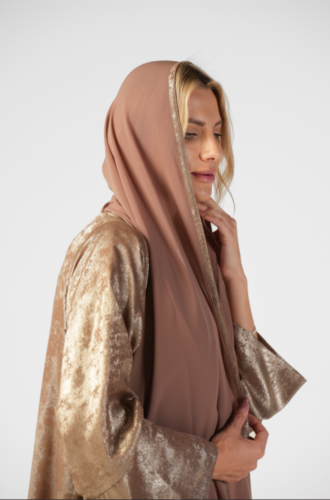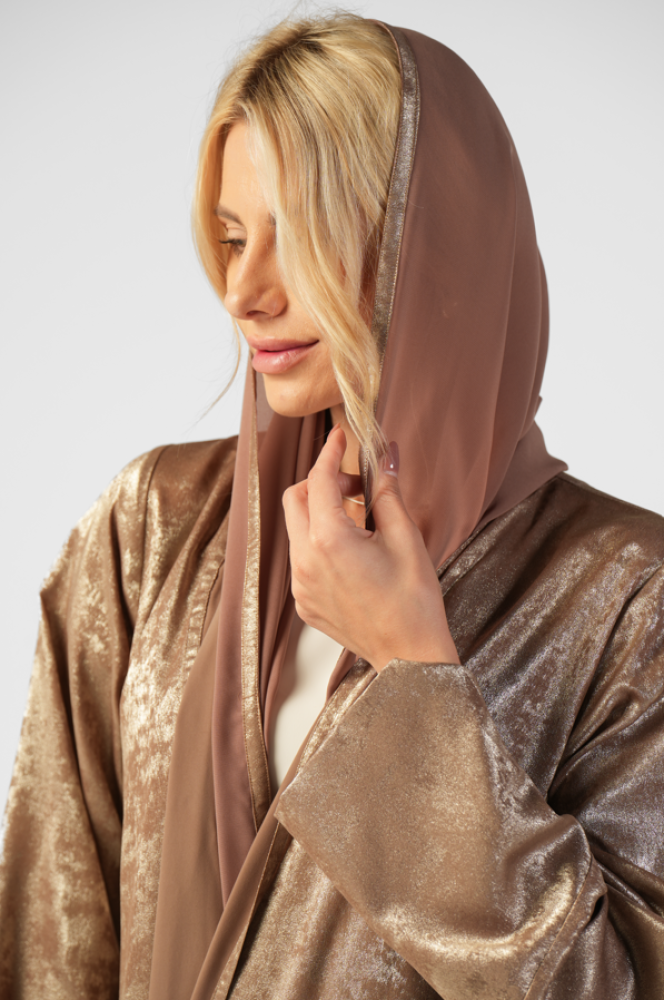 عباية بقصة كلوش خفيف من الكريب اللامع مع طرحة ليزر بطرف لامع