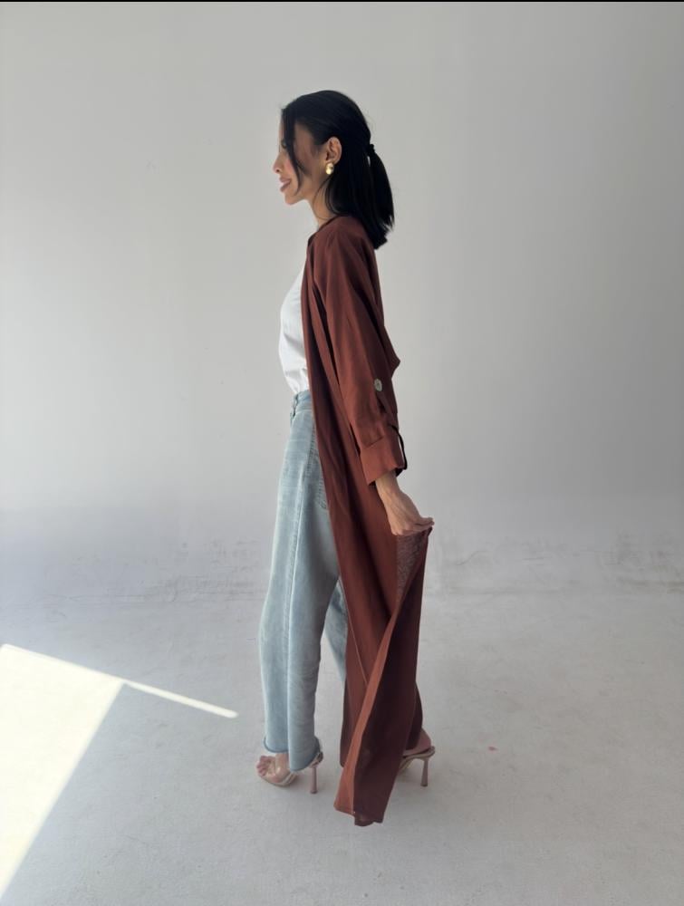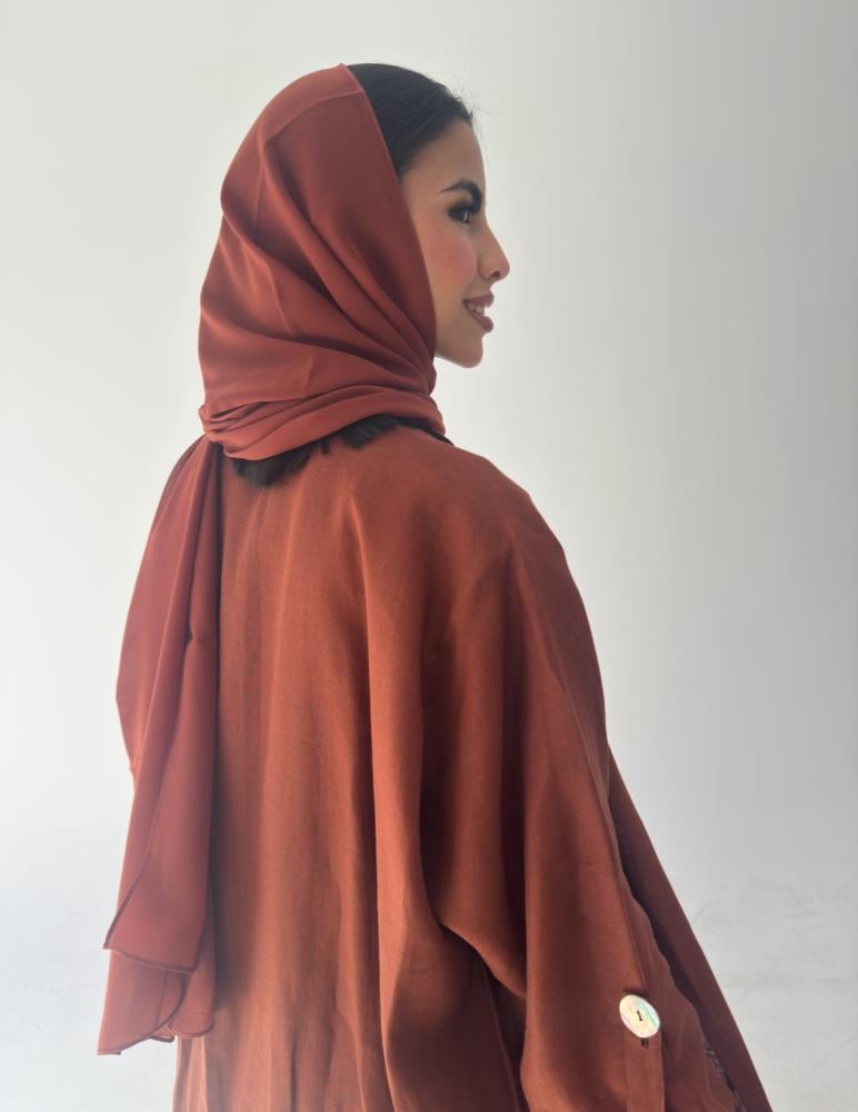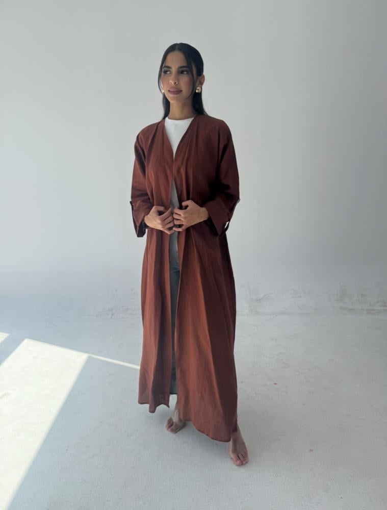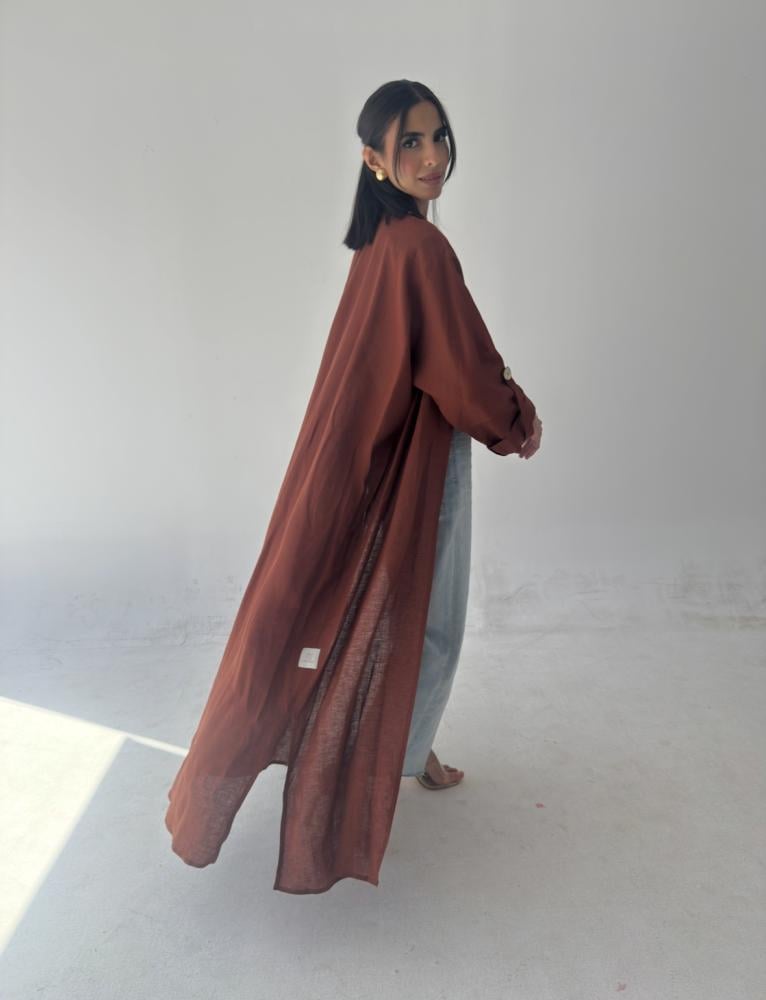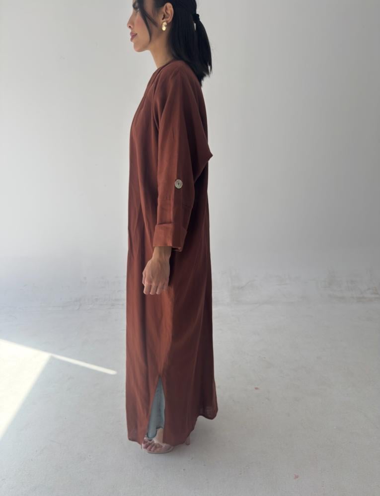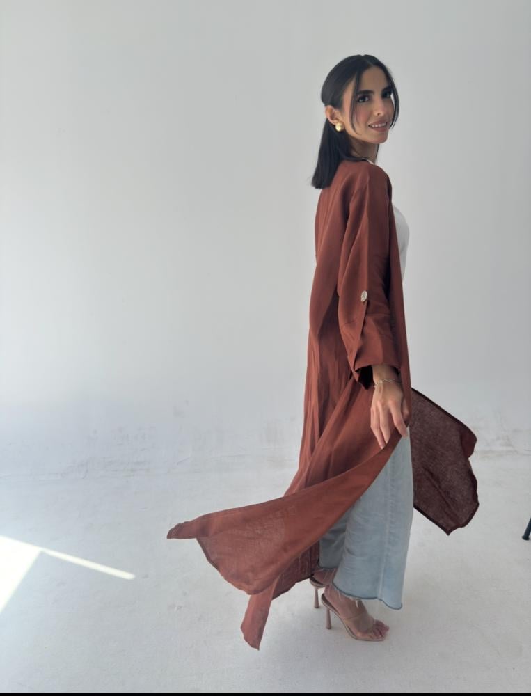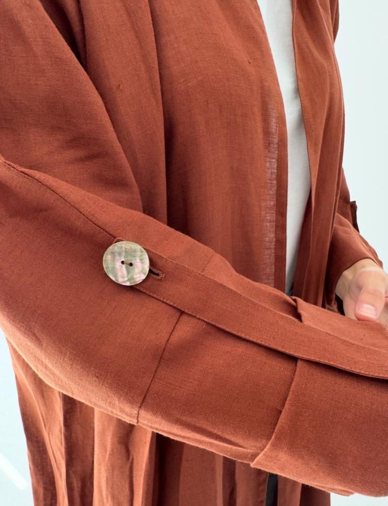 عباية صيفية بقصة واسعة من اللينن الطبيعي 100% مع فتحتين جانبية عملية و أكمام ب ازرار الصدف